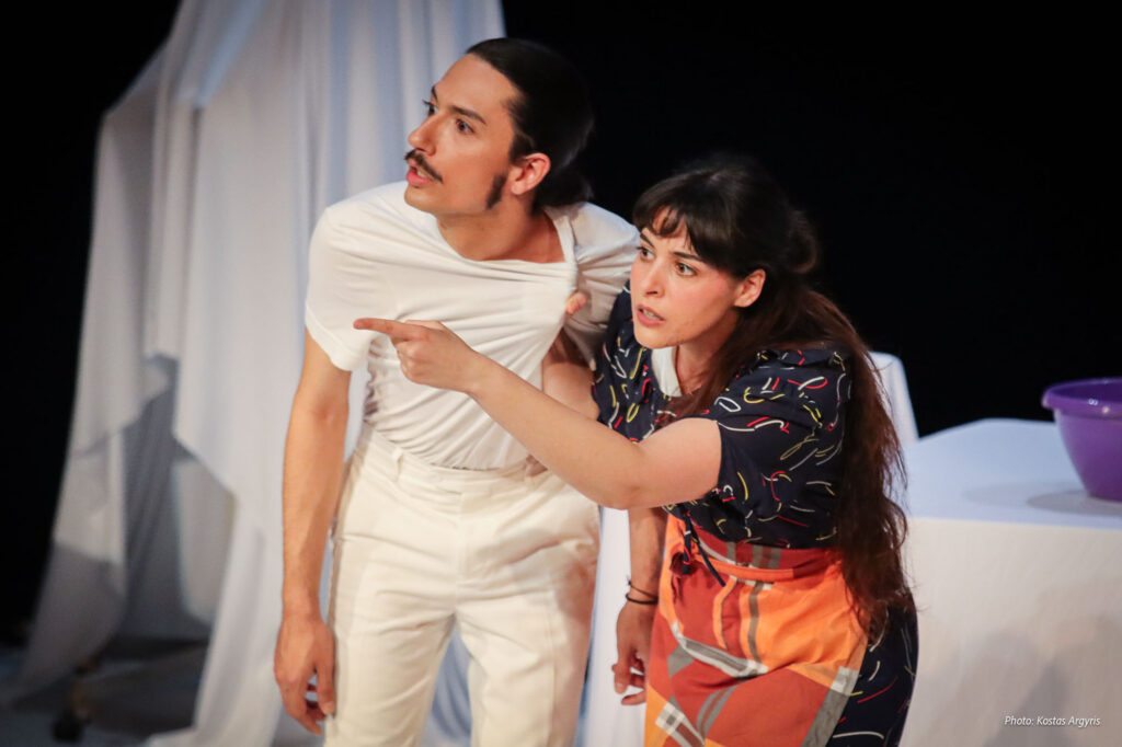 Μιχάλης: Με την καθοδήγηση του σκηνοθέτη μας, κληθήκαμε για τον κάθε ρολό ξεχωριστά να γράψουμε ένα βιογραφικό σημείωμα, όπου αργότερα έπρεπε να το φέρουμε και να το παρουσιάσουμε επί σκηνής. Η πρόκληση ξεκίνησε αρχικά με τους δύο ηθοποιούς να ανακαλύψουν τον ρόλο του αφηγητή. Σίγουρα, ο ρόλος του αφηγητή είναι πιο ουδέτερος και πιο γειωμένος από τους υπολοίπους. Δεύτερον, αποφασίσαμε να προχωρήσουμε αυτό το «παιχνίδι» σε ένα επόμενο στάδιο: Ο Μιχάλης θα περάσει και από έναν γυναικείο ρόλο, και η Ελίνα από έναν ανδρικό. Αυτό εμπλούτισε ακόμη περισσότερο τις ερμηνείες.