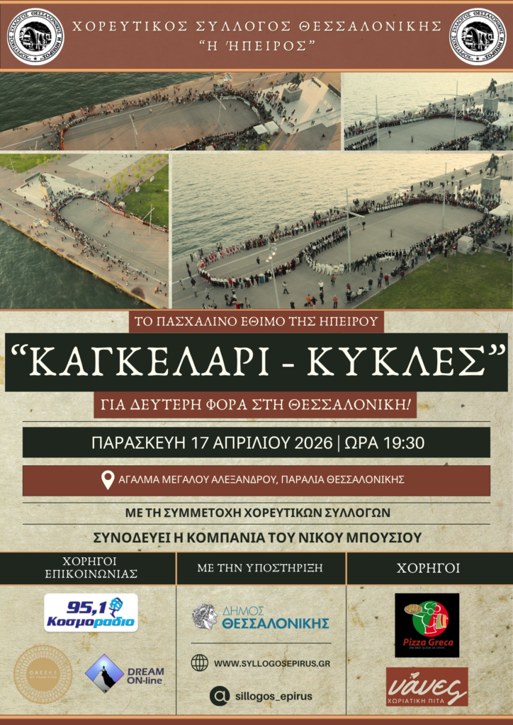 Ο Χορευτικός Σύλλογος Θεσσαλονίκης «Η ΉΠΕΙΡΟΣ» διοργανώνει για δεύτερη συνεχή χρονιά στην πόλη της Θεσσαλονίκης το «Καγκελάρι» ή αλλιώς «Κύκλες»! Το «Καγκελάρι – Κύκλες» αποτελεί ένα μεγαλοπρεπές πασχαλινό έθιμο της Ηπείρου με προέλευση από τα Τζουμέρκα!